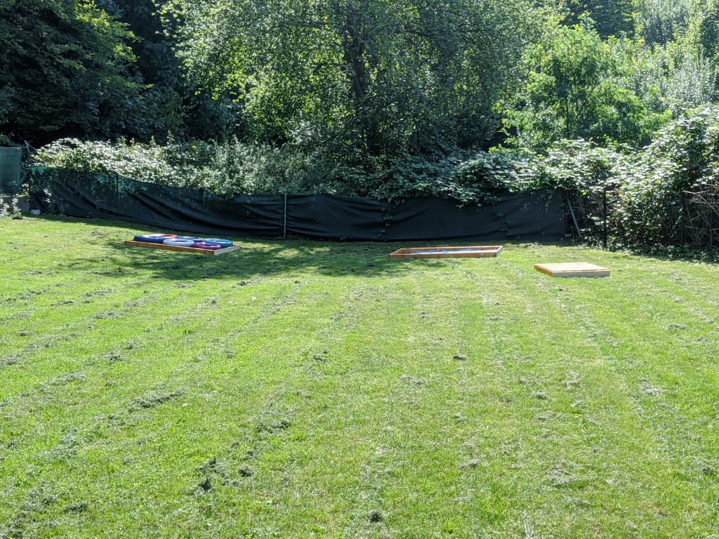 Kaum 8 Stunden später und mit einer ordentlichen Portion Schweiß und Spaß, hatten wir 3 fest auf dem Platz montierte Übungsgeräte!